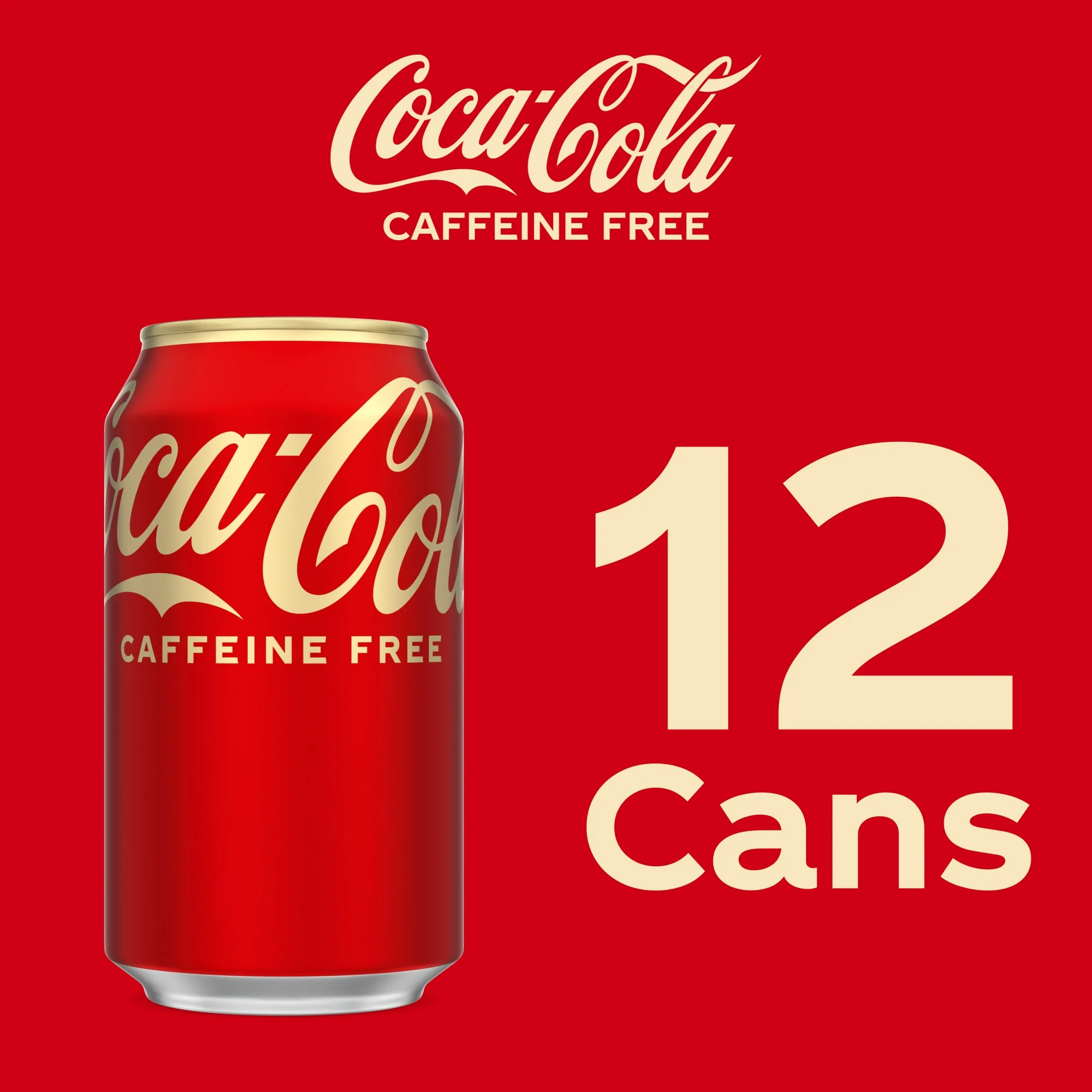 - 12 pack, 12 fl oz cans of Coca-Cola Caffeine-Free