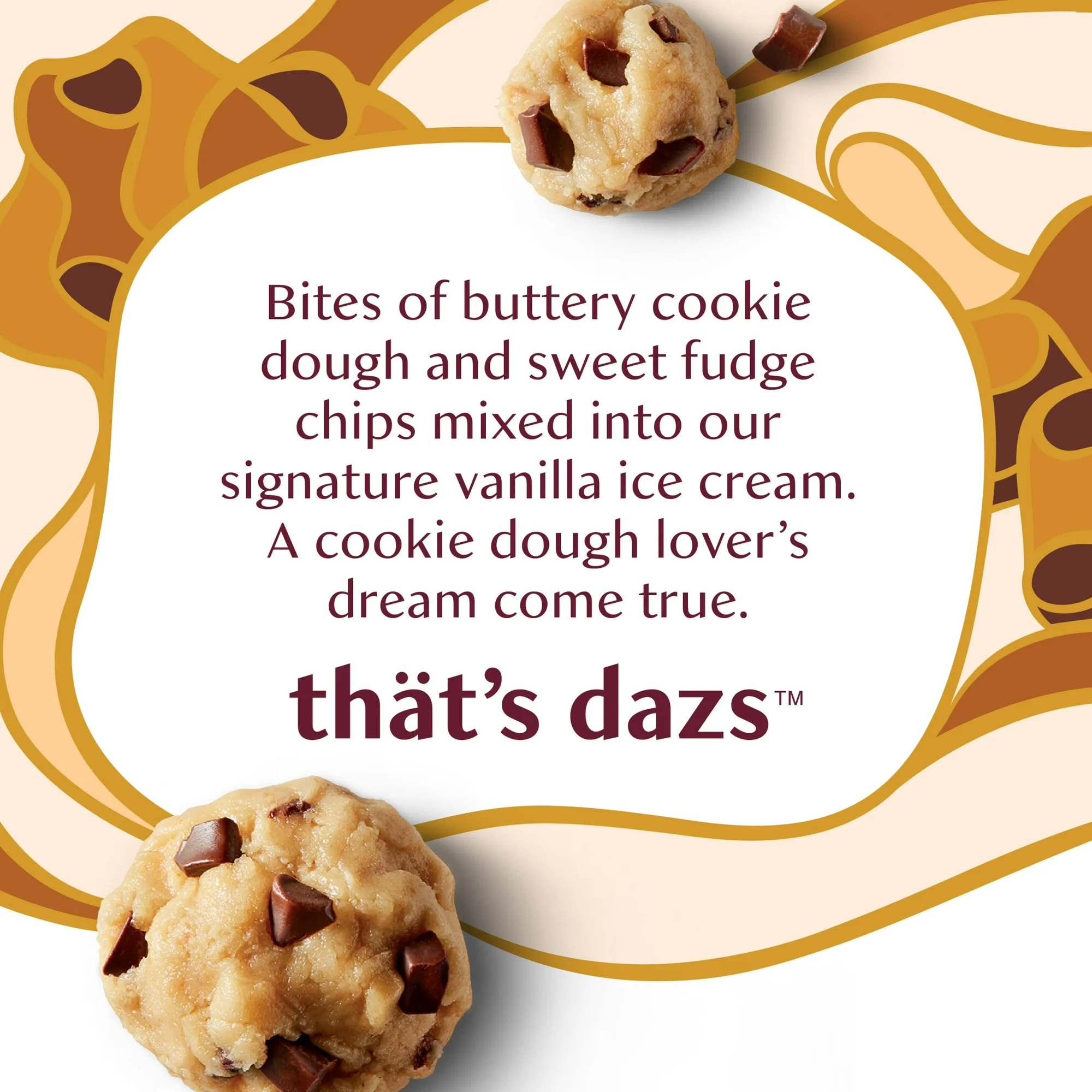 • Bites of buttery cookie dough and sweet fudge chips mixed into our signature vanilla ice cream