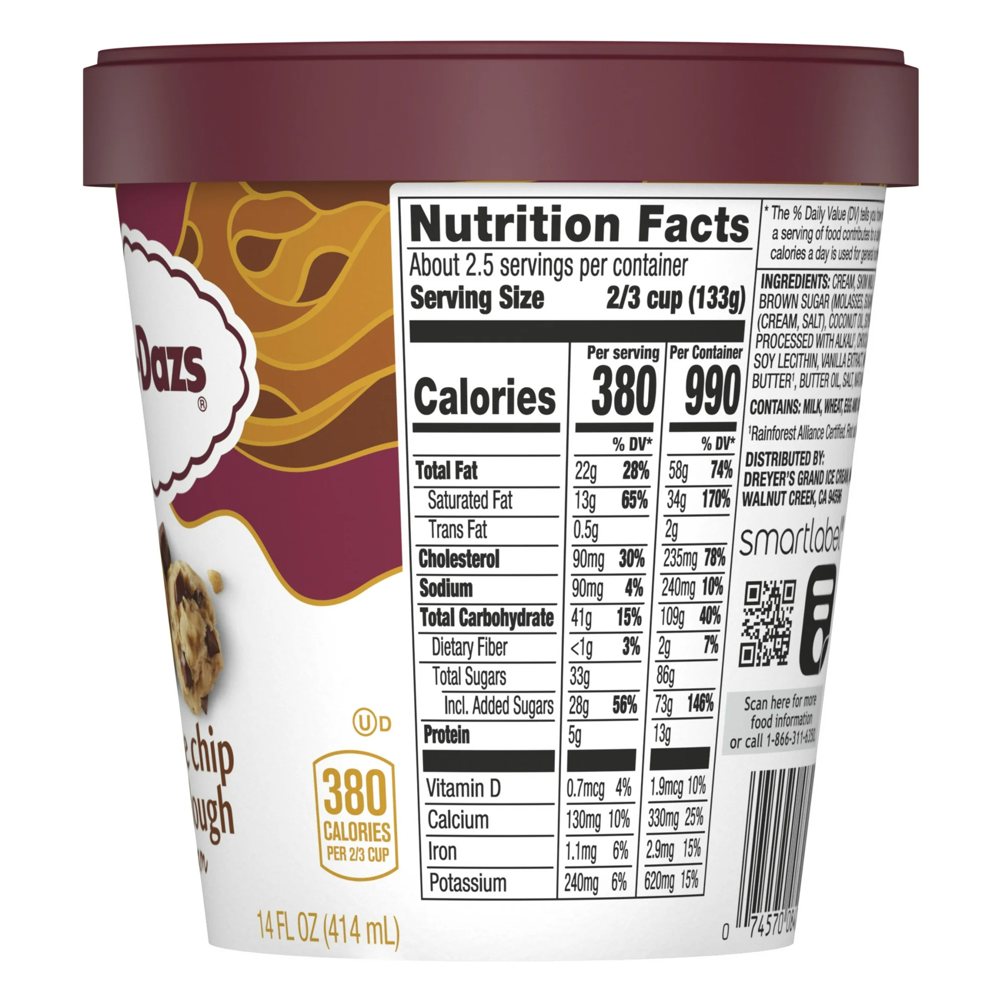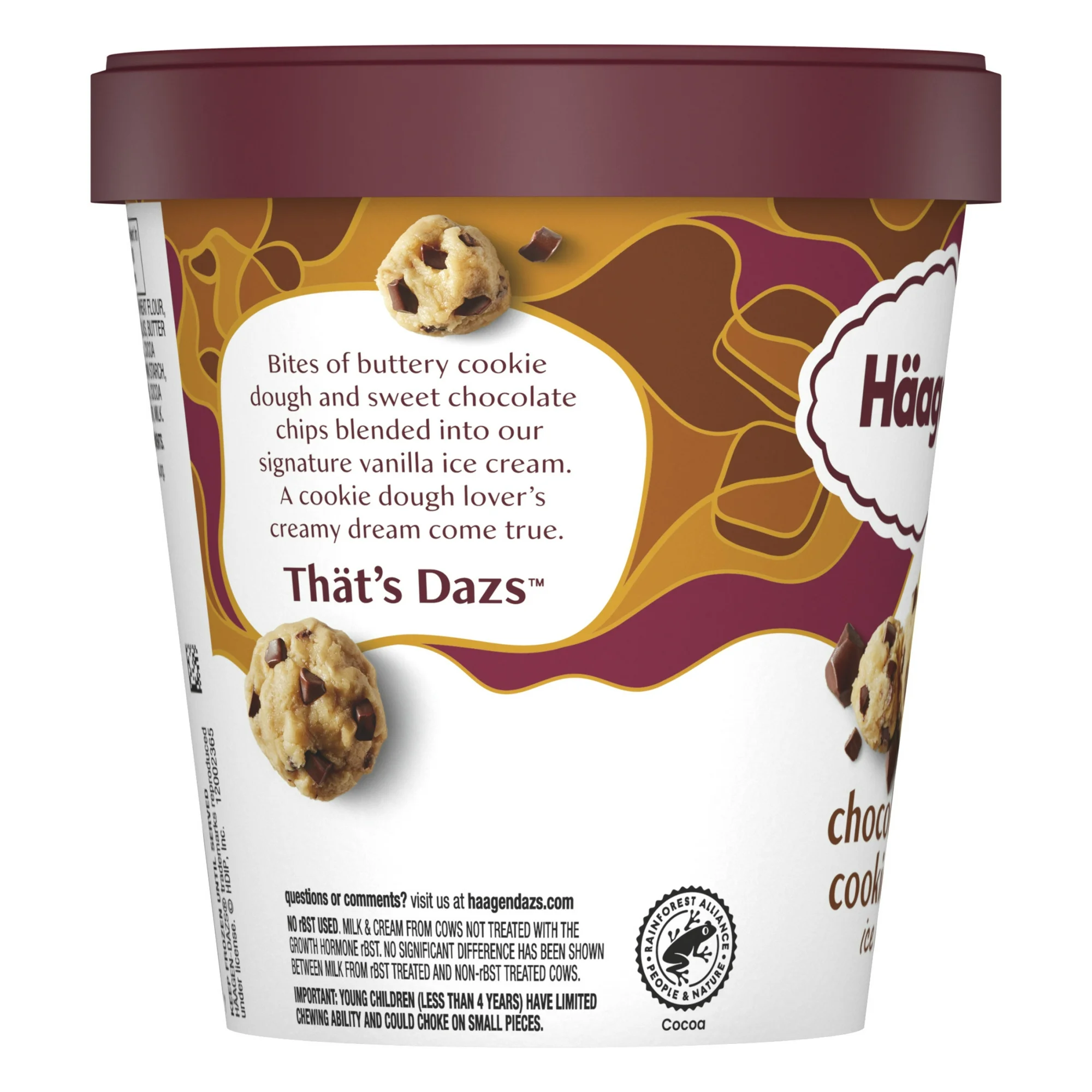 Haagen Dazs Chocolate Chip Cookie Dough Ice Cream offers a deeply indulgent ice cream experience that combines rich chocolate chips with buttery chunks of cookie dough and creamy vanilla ice cream. This cookie dough ice cream is made with milk and cream not treated with rBST* for a blissfully sweet treat. Sink your spoon into this sweet Haagen Dazs indulgence and explore the possibilities. Sprinkle your favorite toppings on an ice cream sundae or add an extra scoop to an ice cream cone for a classic frozen dessert. Here’s to choosing deliciousness Every. Single. Time. That’s Dazs. *No significant difference has been shown between milk from rBST treated and non-rBST treated cows.