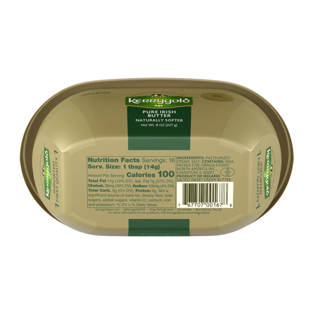 - KERRYGOLD BUTTER: Made from the milk of grass-fed cows, our pure Irish butter is rich and soft. From salted butter to unsalted, garlic and herb to reduced fat, Kerrygold butter elevates your dishes.