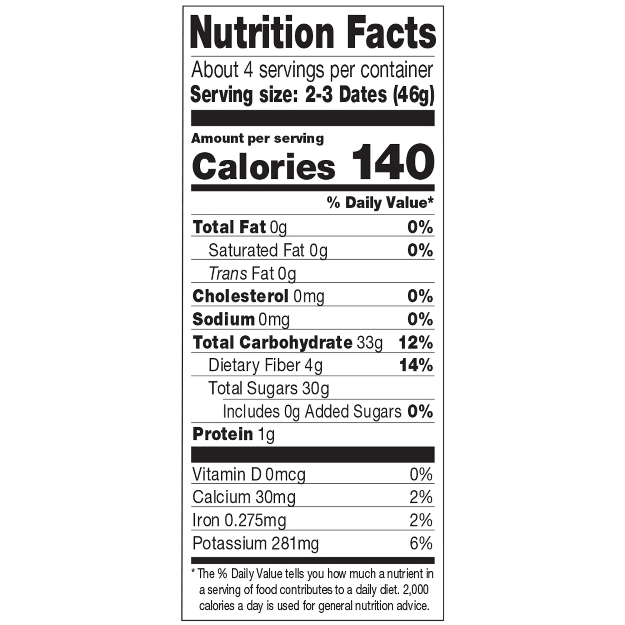 • Dates, Pitted, Fresh Medjool. Premium. 4 grams of fiber. No additives. 281 mg potassium. No pesticides. Non GMO. 50% more potassium than bananas (By weight (USDA nutrient database)). Kosher for passover.