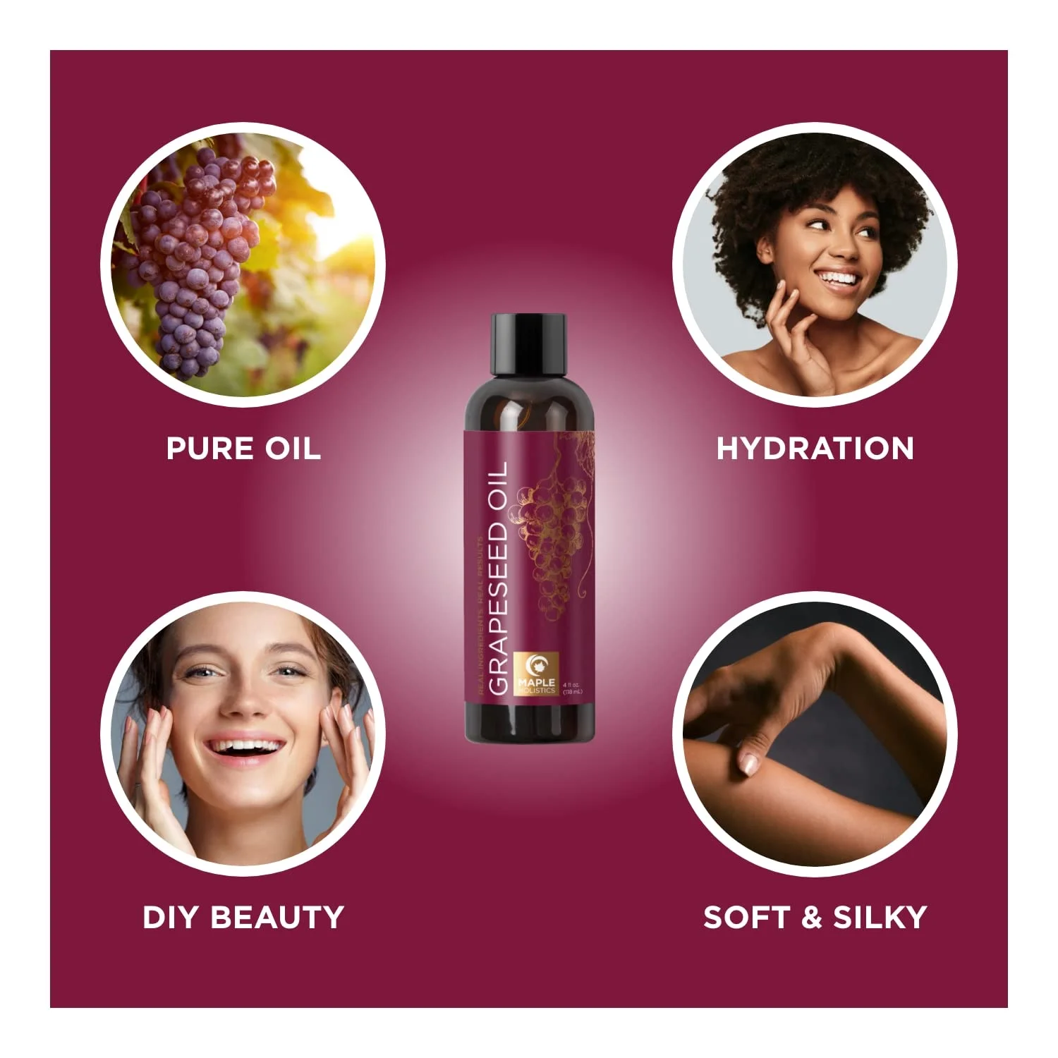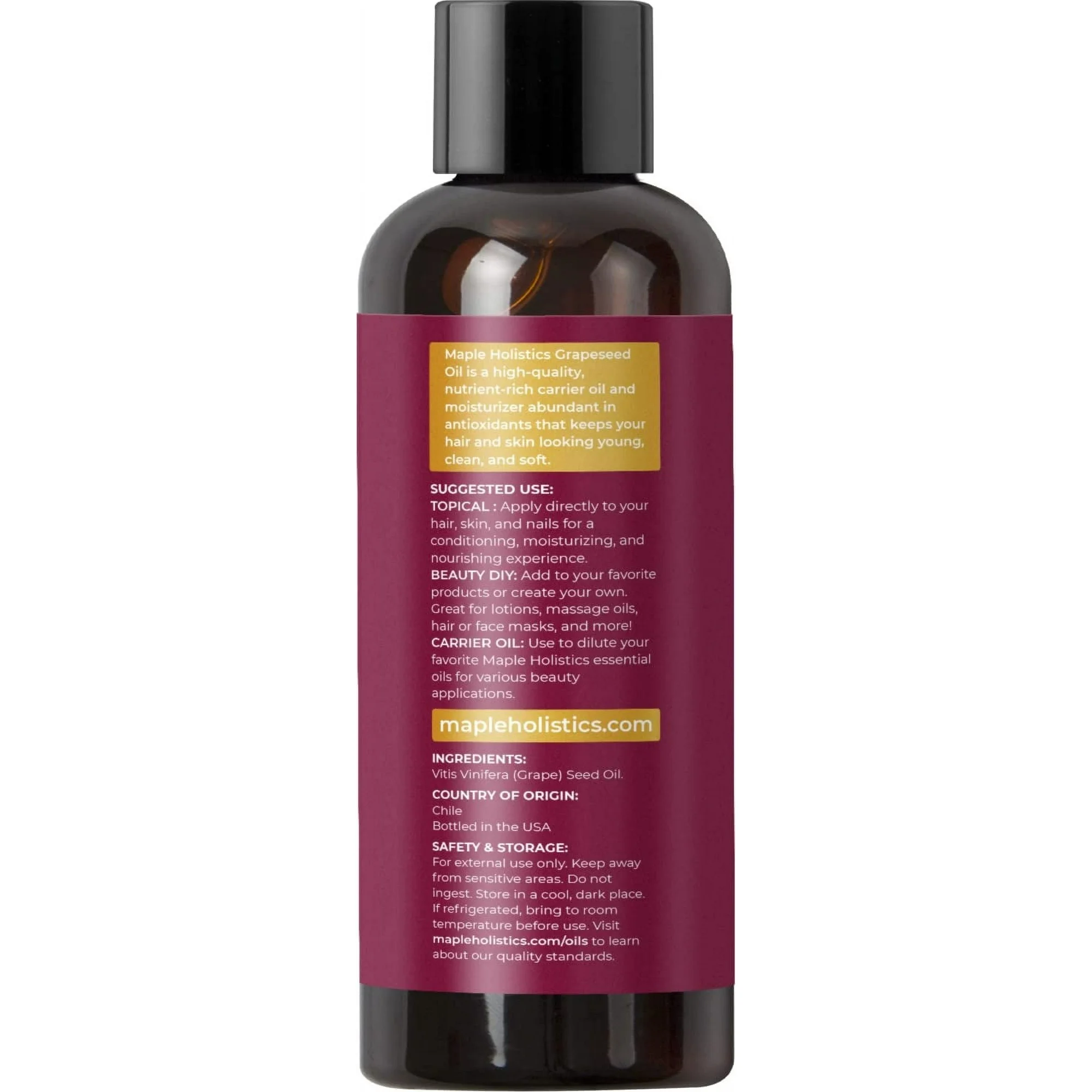 - Maple Holistics Quality – We believe in real ingredients for real results so try our pure grapeseed oil for hair skin and nails by itself or use it with your favorite Maple Holistics essential oils