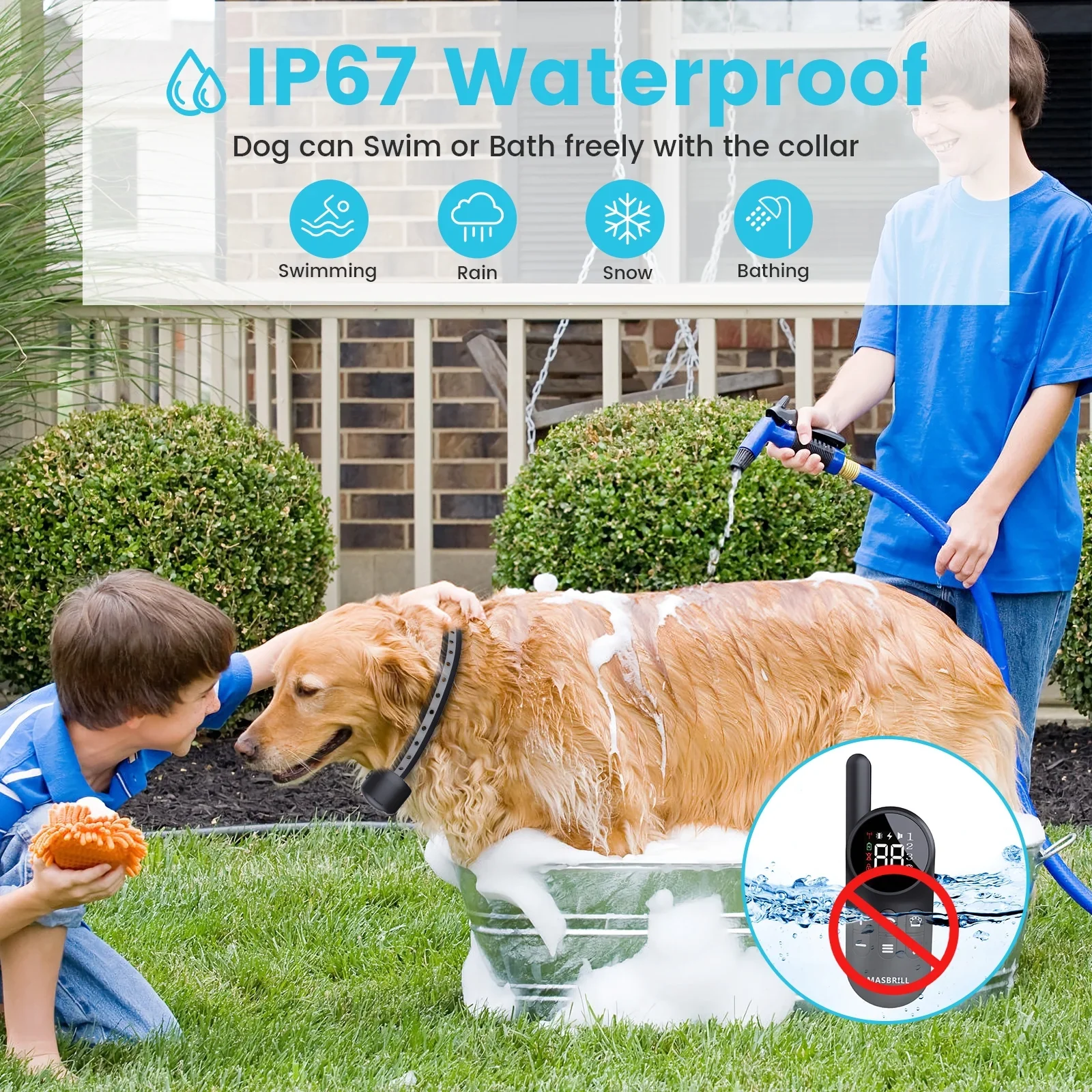 • IPX7 Waterproof & Long-Distance Control Designed as a durable dog e collar, its waterproof receiver withstands rain, swimming, and muddy play (remote not waterproof). With an impressive 1000ft range, this pet shock collar for big dogs gives freedom while maintaining control – perfect for open spaces where standard shock collars fail.
