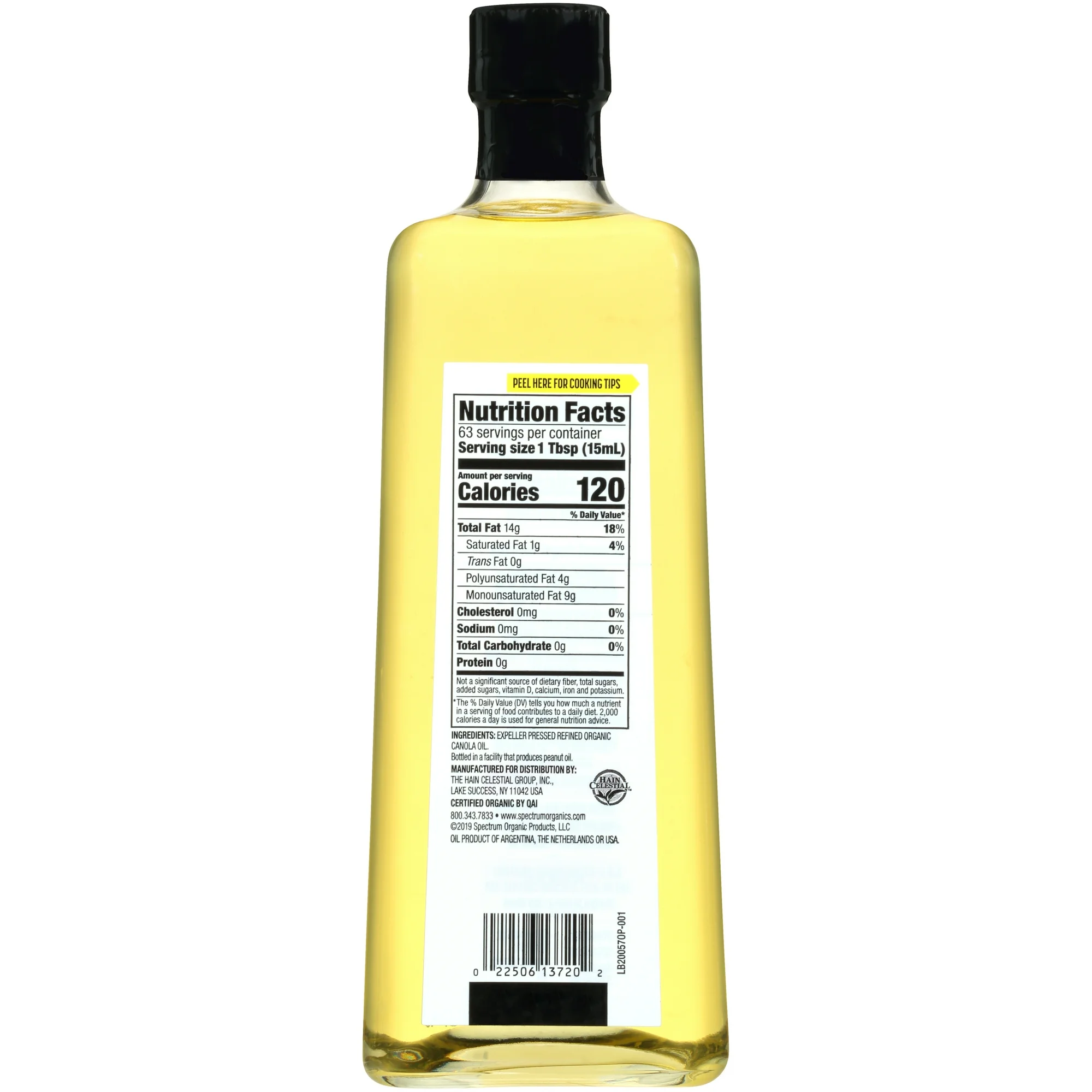 Spectrum Culinary Organic Canola Oil has a neutral flavor and is perfect for baking and sautéing at medium-high heat. Our all-purpose cooking oil is great for baking cakes, cookies and pies as well as smooth and delicious salad dressings, sauces and marinades. Our expeller pressed canola oil is Non-GMO Project Verified and USDA-Certified Organic. Includes one 32 fl. oz. bottle of Spectrum Culinary Organic Canola Oil. Spectrum brand offers a premium line of organic culinary oils, vinegars, condiments and supplements made with high quality ingredients sourced from all over the world. Expertly crafted for 30 years and honestly labeled, our brand is committed to your wellness lifestyle. Spectrum Organic Canola Oil: