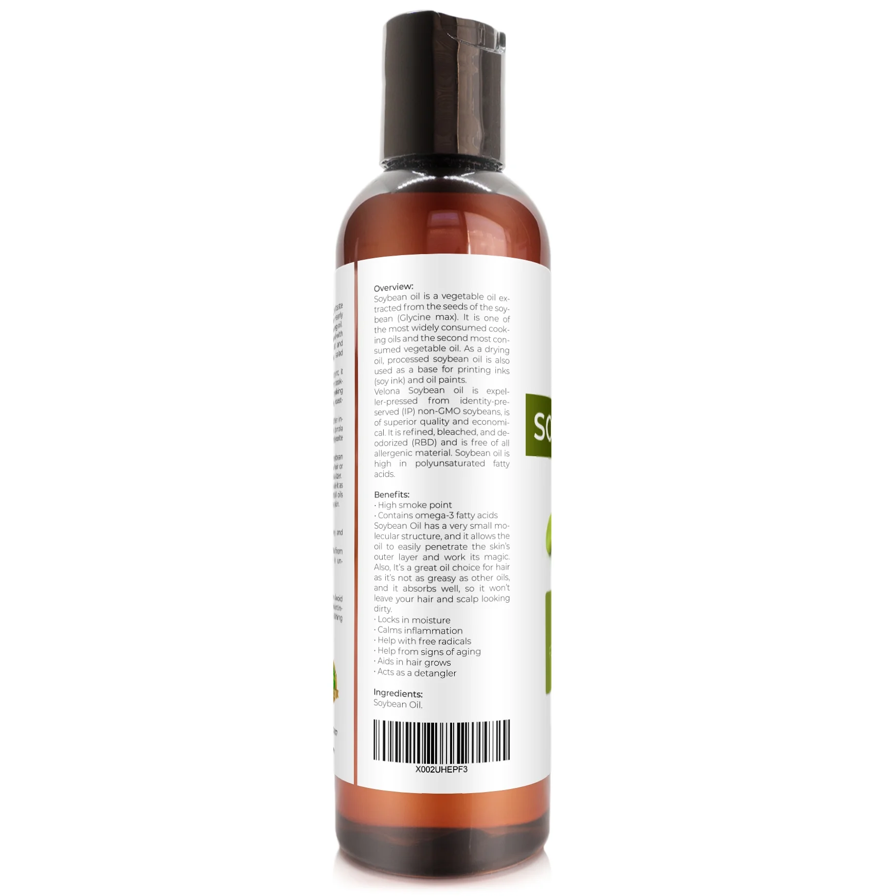 Soya Bean Carrier Oil is extremely high in Lecithin, Sterolins, and Vitamin E.