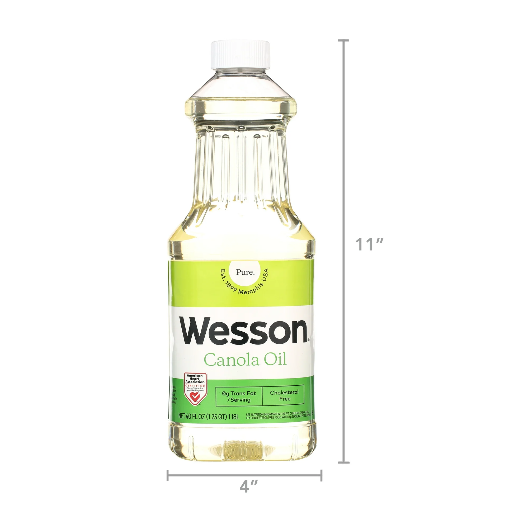 - Wesson Pure Canola Oil, 0g Trans Fat, Cholesterol Free, 40 fl oz